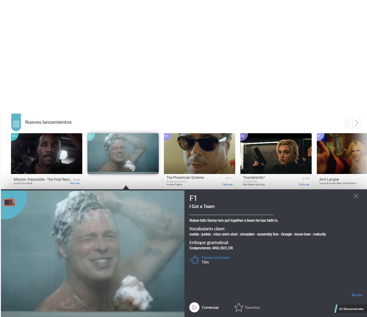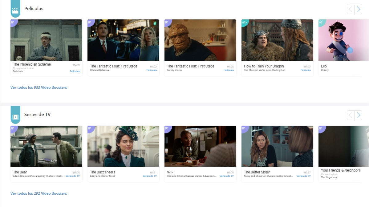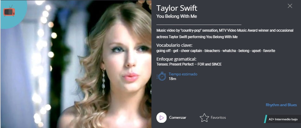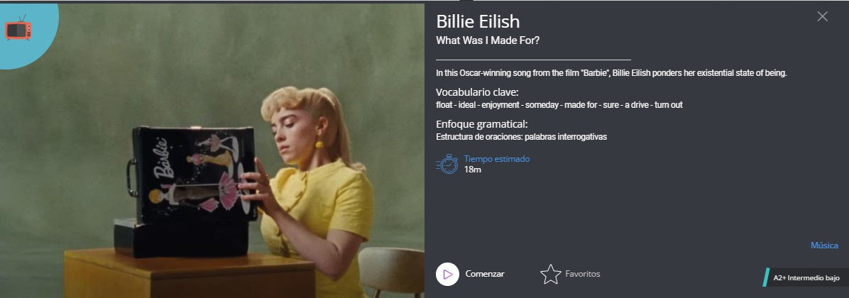 Y si ya tienes conocimientos en el idioma tenemos una serie de ejericios, más de 2000, para que reafirmes tus conocimientos y avances al siguiente nivel, todo con cine, series y música.