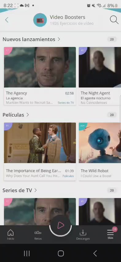 Podrás practicar inglés de forma entretenida, estudiarás con contenidos interesantes y entretenidos como clips de Cine, Series de TV y Música. Con ejercicios cortos, que no duran más de 20 minutos y todo se desarrolla bajo un esquema de Gamification. No hay calificaciones, sólo puntos que obtienen por contestar, como en los videojuegos. Olvídate de los ejercicios aburridos.
